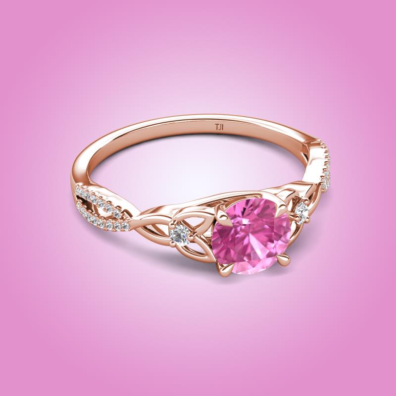 Round Pink Sapphire set in Tiger Claw Four Prong and Side Round Natural Diamond of 1.31 ctw Women Celtic Love Knot Entwined Engagement Ring in 10K Rose Gold More Details ...