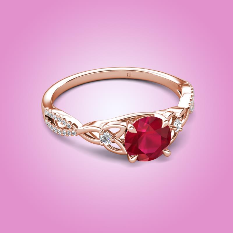 Round Ruby set in Tiger Claw Four Prong and Side Round Natural Diamond of 1.16 ctw Women Celtic Love Knot Entwined Engagement Ring in 18K Rose Gold More Details ...