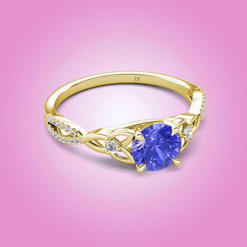 Round Tanzanite set in Tiger Claw Four Prong and Side Round Natural Diamond of 1.13 ctw Women Celtic Love Knot Entwined Engagement Ring in 10K Yellow Gold More Details ...