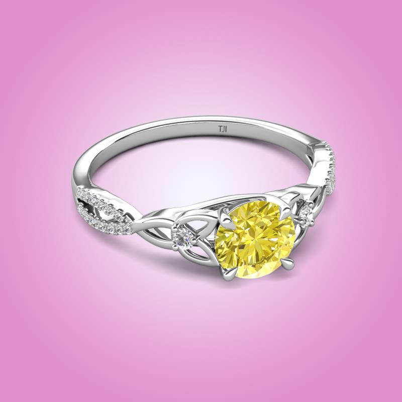 Round Yellow Diamond set in Tiger Claw Four Prong and Side Round Natural Diamond of 1.01 ctw Women Celtic Love Knot Entwined Engagement Ring in Sterling Silver More Details ...