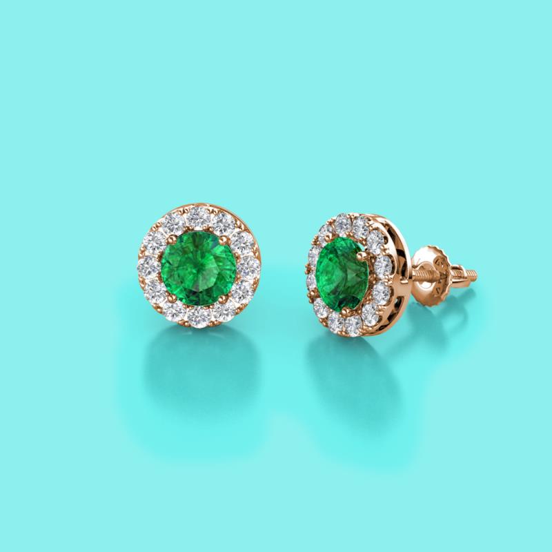 Emerald and Diamond Womens Halo Stud Earrings 0.86 ctw 14K Rose Gold More Details ...