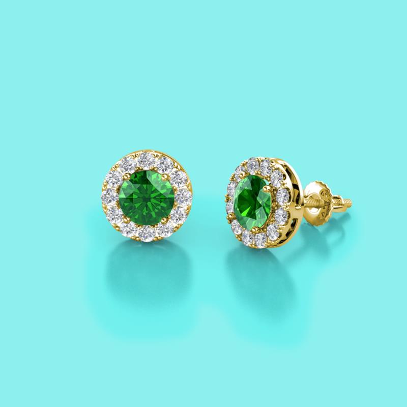 Green Garnet and Diamond Womens Halo Stud Earrings 0.94 ctw 14K Yellow Gold More Details ...