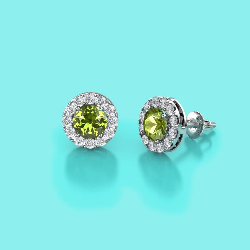 This is a Beautiful 0.99 ctw Halo Style Studs features Center Peridot & surrounded with Small Round Diamond which are designed to add a touch of Style and Elegance to just about any Outfit.