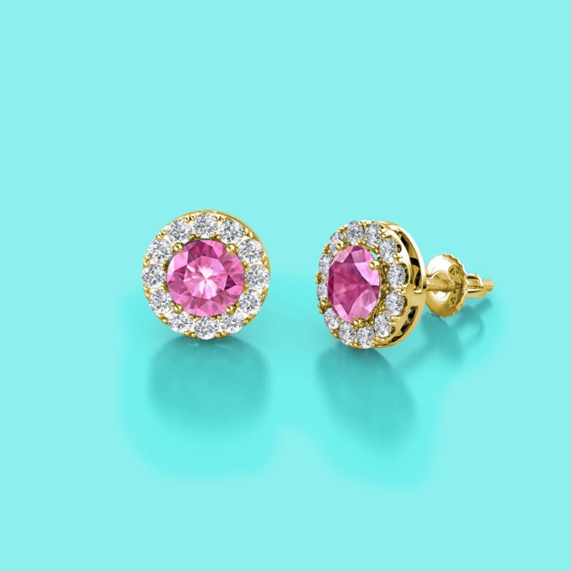 Pink Sapphire and Diamond Womens Halo Stud Earrings 0.89 ctw 14K Yellow Gold More Details ...