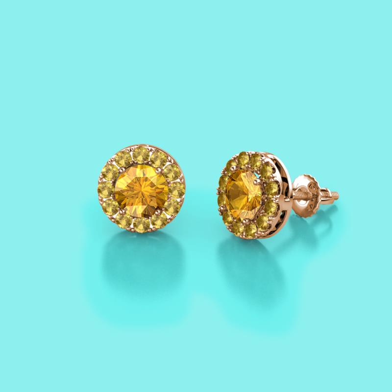 Round Citrine 0.71 ctw Women Halo Stud Earrings 14K Rose Gold More Details ...