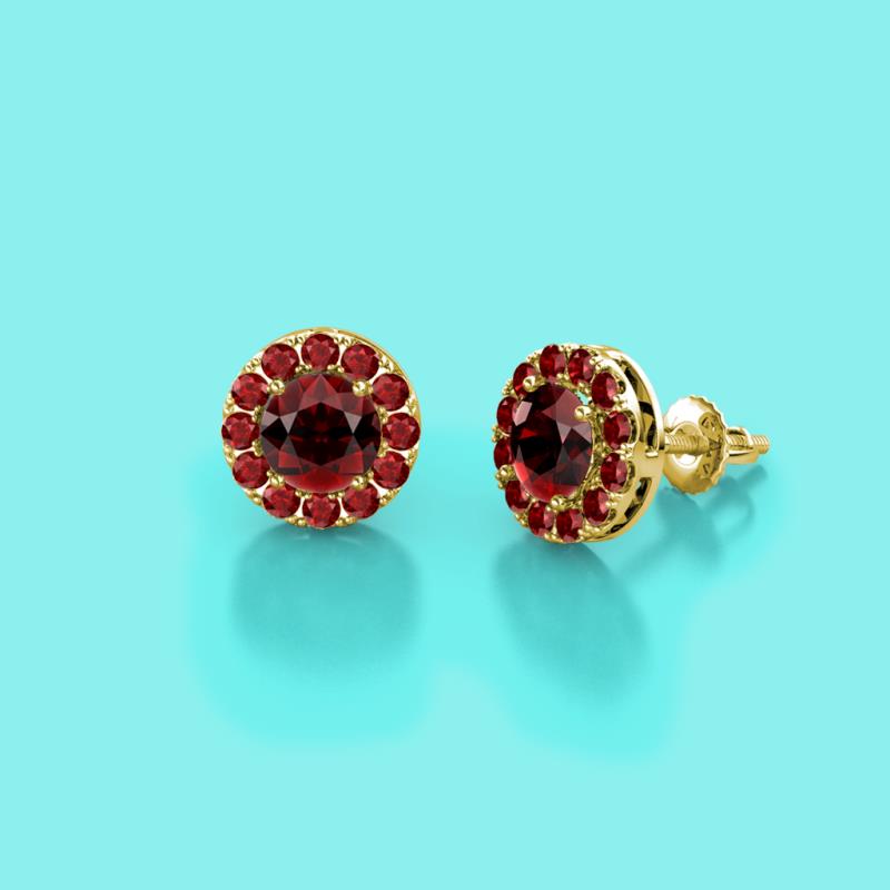 Round Red Garnet 1.02 ctw Women Halo Stud Earrings 14K Yellow Gold More Details ...