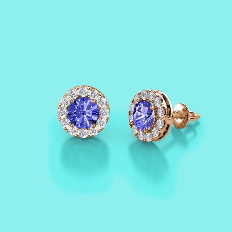 Tanzanite and Diamond Womens Halo Stud Earrings 0.82 ctw 14K Rose Gold More Details ...