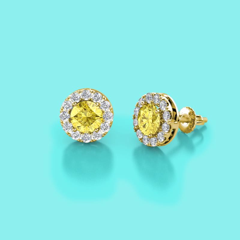 This is a Beautiful 0.89 ctw Halo Style Studs features Center Yellow Sapphire & surrounded with Small Round Diamond which are designed to add a touch of Style and Elegance to just about any Outfit.