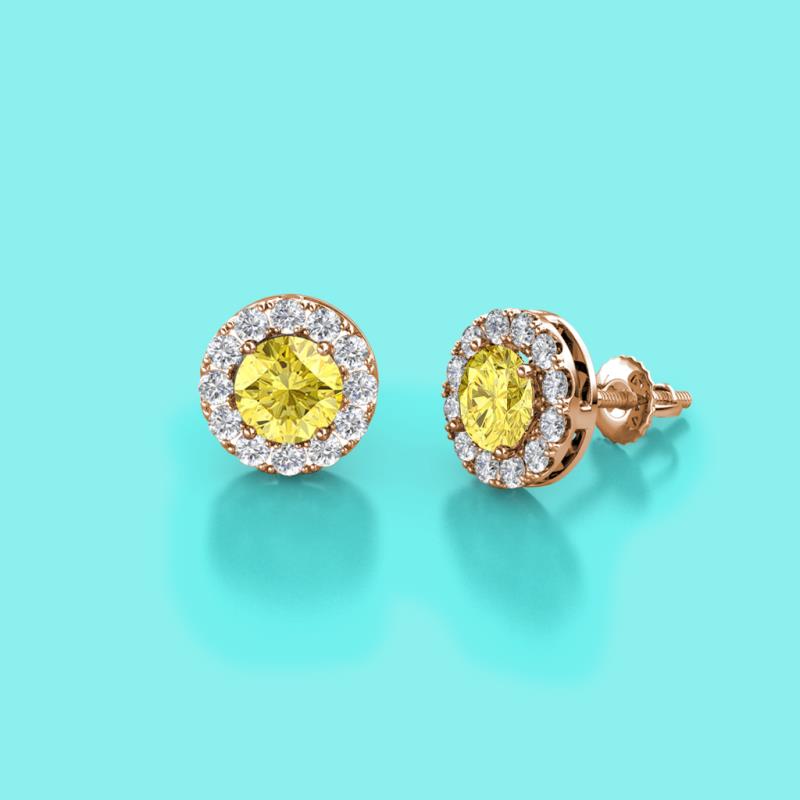 Yellow Sapphire and Diamond Womens Halo Stud Earrings 0.89 ctw 14K Rose Gold More Details ...