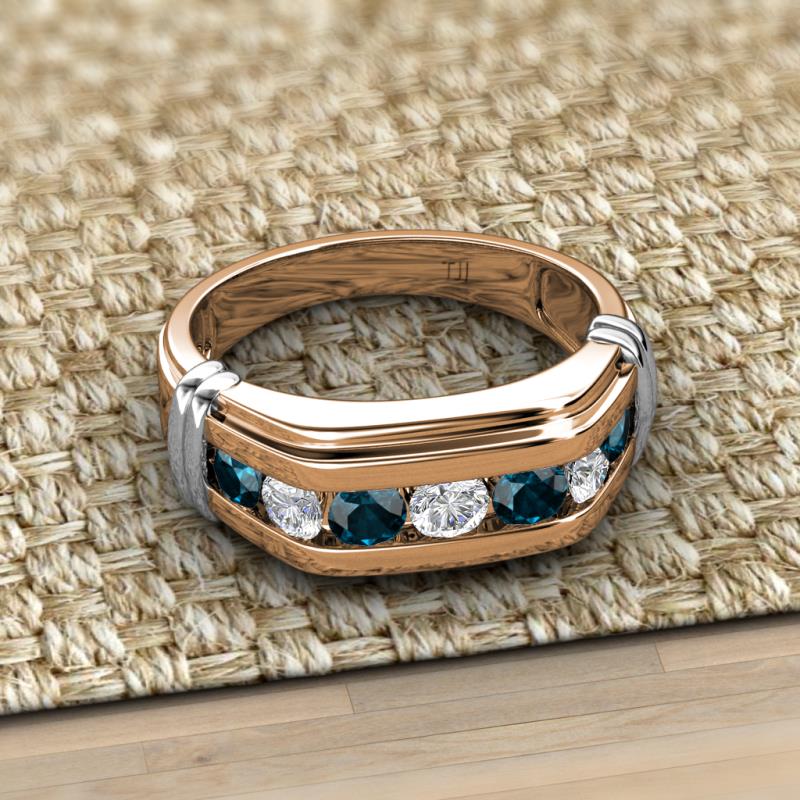 Round 1.05 ctw Blue Diamond and Lab Grown Diamond 7 Stone Channel Set Men Wedding Ring in 18K Rose Gold More Details ...