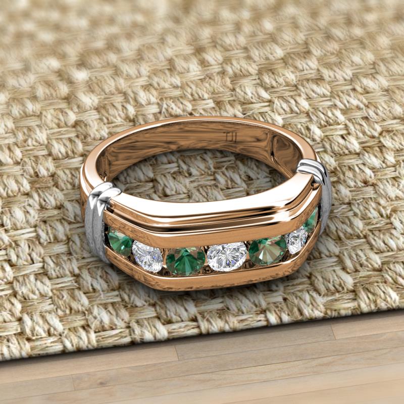 Round 1.12 ctw Created Alexandrite and Lab Grown Diamond 7 Stone Channel Set Men Wedding Ring in 18K Rose Gold More Details ...