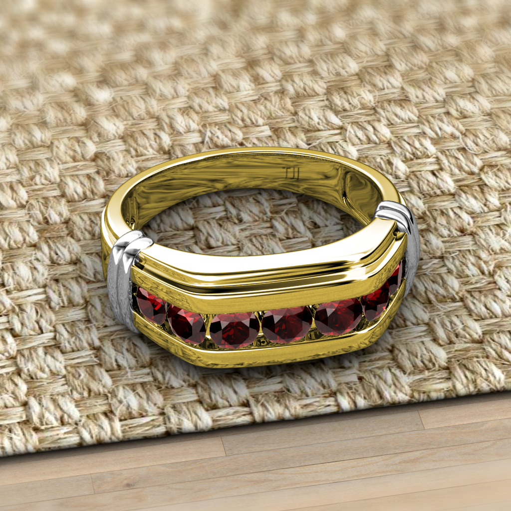 1.18 ctw Round Red Garnet (3.40 mm) 7 Stone Channel Set Men Wedding Ring in 18K Yellow Gold More Details ...