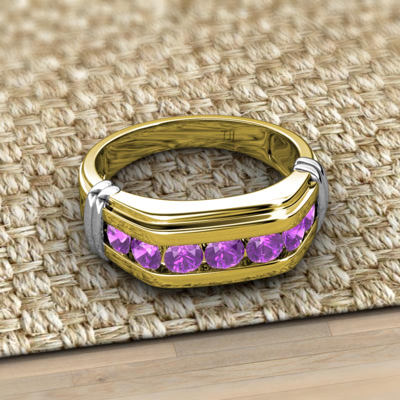 Round Amethyst 1 ctw 7 Stone Channel Set Men Wedding Ring 10K Yellow Gold More Details ...
