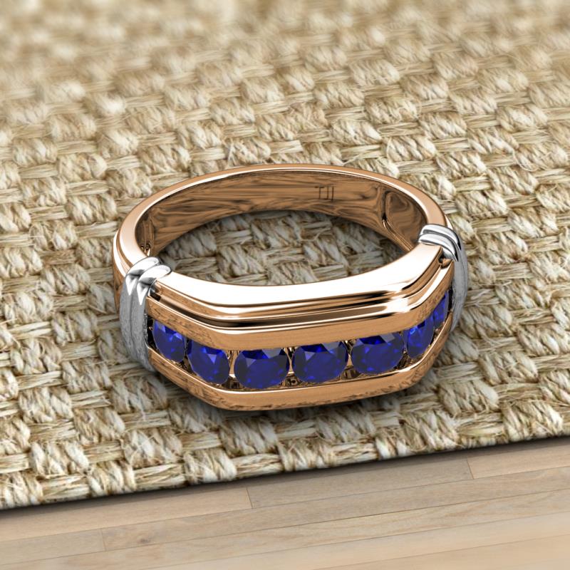 Round Blue Sapphire 1 ctw 7 Stone Channel Set Men Wedding Ring 18K Rose Gold More Details ...