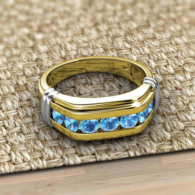 Round Blue Topaz 1 ctw 7 Stone Channel Set Men Wedding Ring 14K Yellow Gold More Details ...