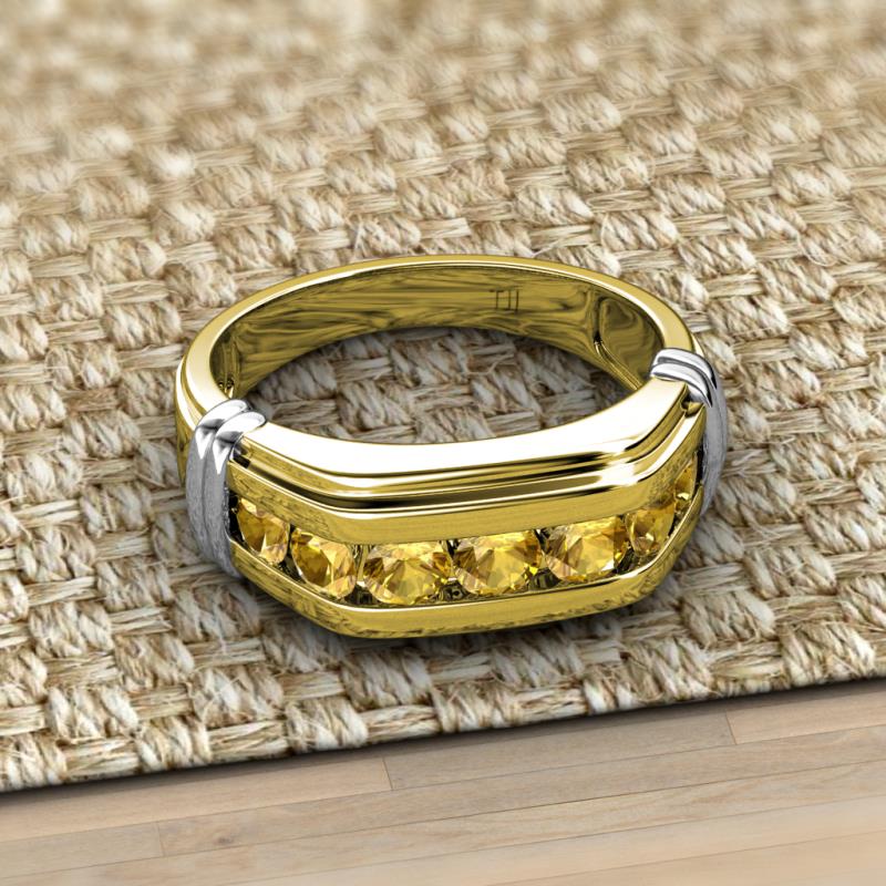 Round Citrine 1 ctw 7 Stone Channel Set Men Wedding Ring 18K Yellow Gold More Details ...
