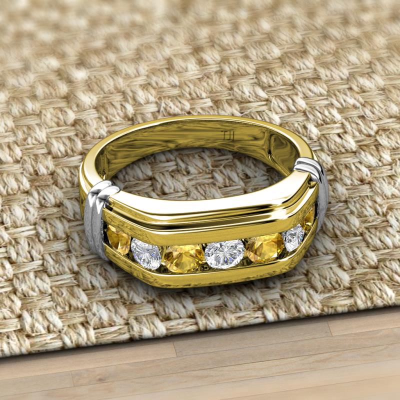 1.01 ctw Round Citrine and Diamond 7 Stone Channel Set Men Wedding Ring in 18K Yellow Gold More Details ...
