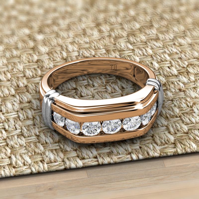 Round Diamond 1.05 ctw 7 Stone Channel Set Men Wedding Ring 10K Rose Gold More Details ...