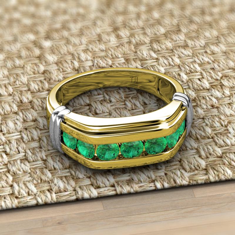 Round Emerald 1 ctw 7 Stone Channel Set Men Wedding Ring 14K Yellow Gold More Details ...