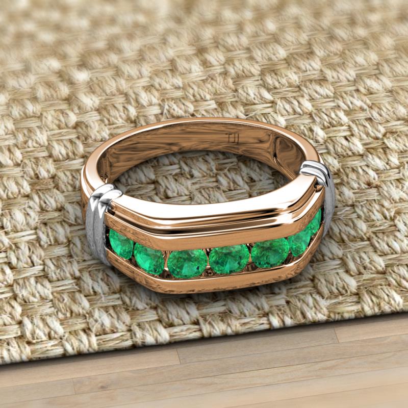 Round Emerald 1 ctw 7 Stone Channel Set Men Wedding Ring 18K Rose Gold More Details ...