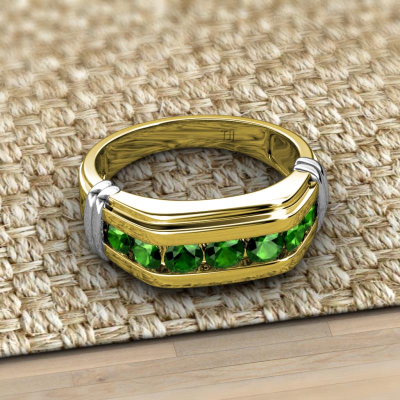 Round Green Garnet 1 1/5 ctw 7 Stone Channel Set Men Wedding Ring 18K Yellow Gold More Details ...