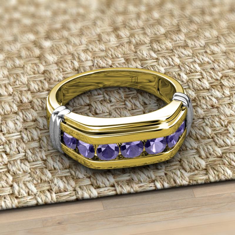 Round Iolite 1 ctw 7 Stone Channel Set Men Wedding Ring 18K Yellow Gold More Details ...