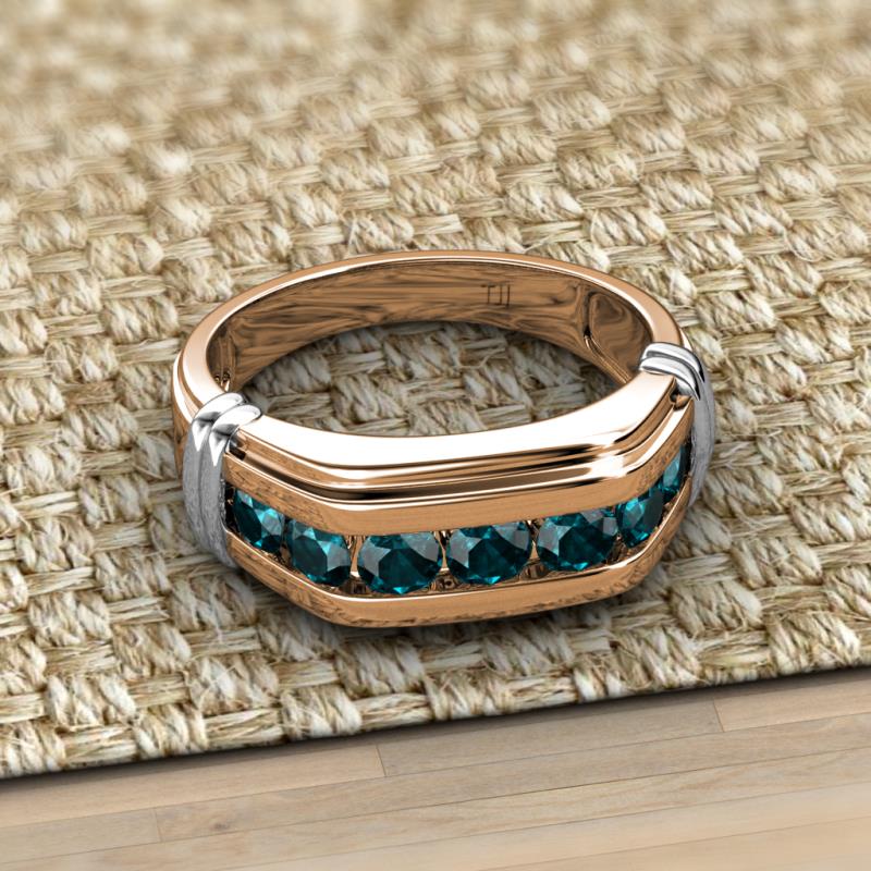 Round London Blue Topaz 1 ctw 7 Stone Channel Set Men Wedding Ring 14K Rose Gold More Details ...