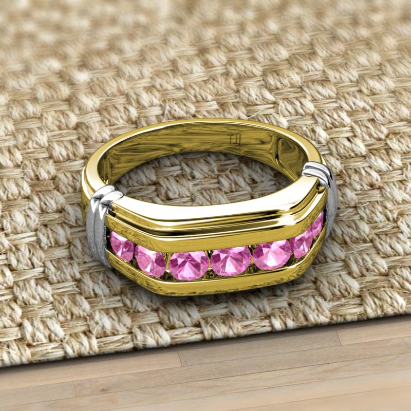Round Pink Sapphire 1 ctw 7 Stone Channel Set Men Wedding Ring 14K Yellow Gold More Details ...