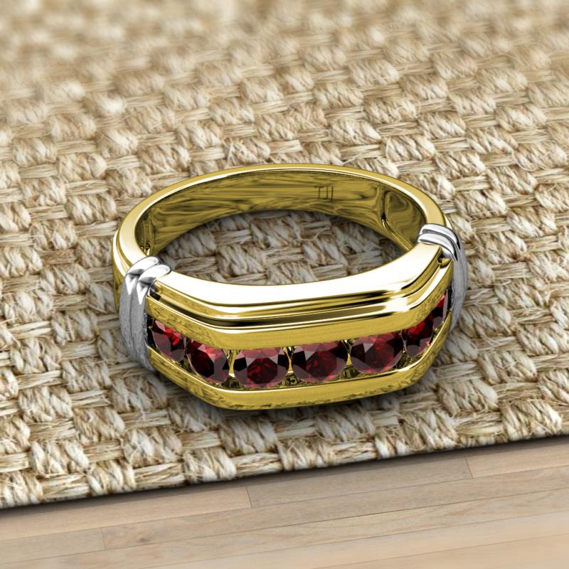 Round Red Garnet 1 1/5 ctw 7 Stone Channel Set Men Wedding Ring 10K Yellow Gold More Details ...