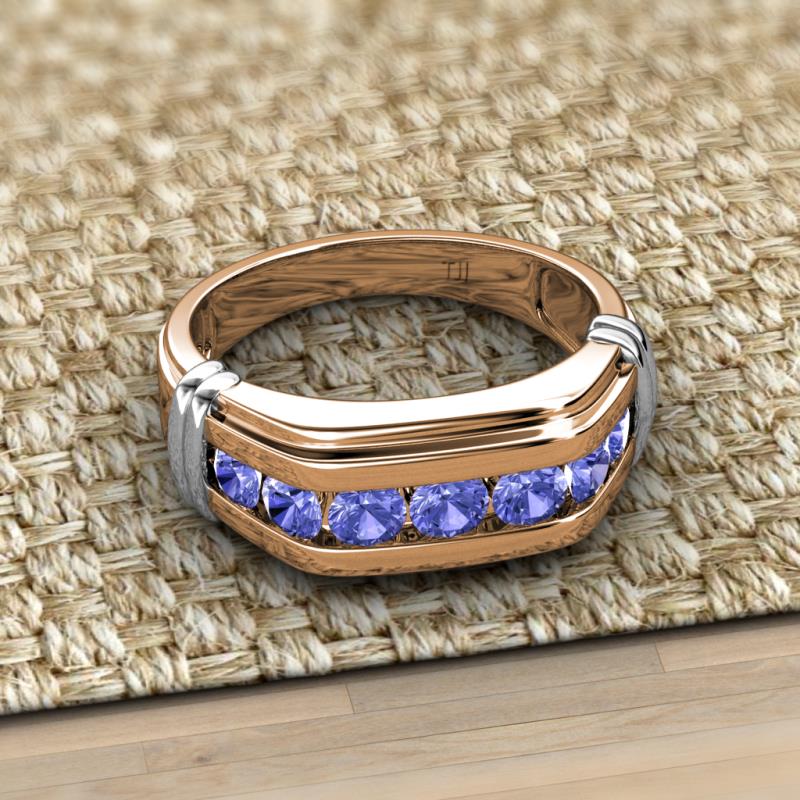 Round Tanzanite 1 ctw 7 Stone Channel Set Men Wedding Ring 14K Rose Gold More Details ...