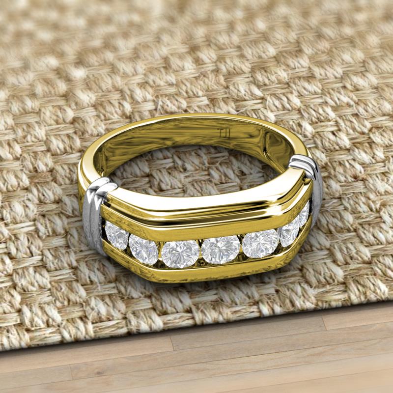 Round White Sapphire 1 ctw 7 Stone Channel Set Men Wedding Ring 10K Yellow Gold More Details ...