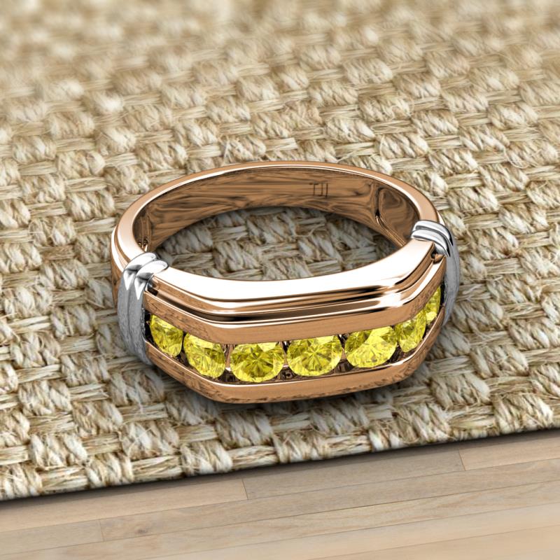 Round Yellow Sapphire 1 ctw 7 Stone Channel Set Men Wedding Ring 10K Rose Gold More Details ...