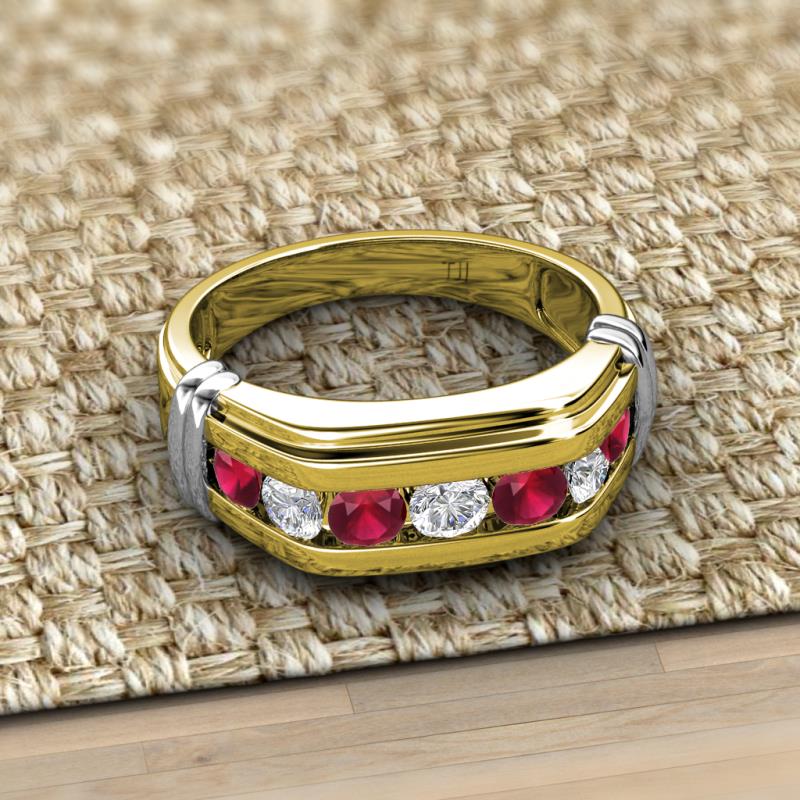 Round 1.08 ctw Ruby and Lab Grown Diamond 7 Stone Channel Set Men Wedding Ring in 18K Yellow Gold More Details ...