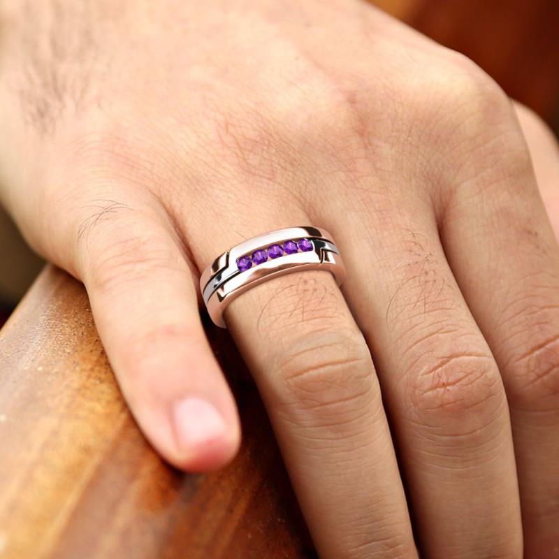 Enhance your daily look with this exquisite men's band, featuring a strong and stable design with five dazzling Amethyst. Crafted in 18K Rose Gold.