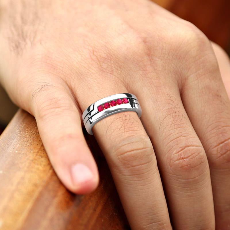 0.30 ctw Round Shape Ruby High Polished Channel Set Men Wedding Band in 18K White Gold. More Details ...