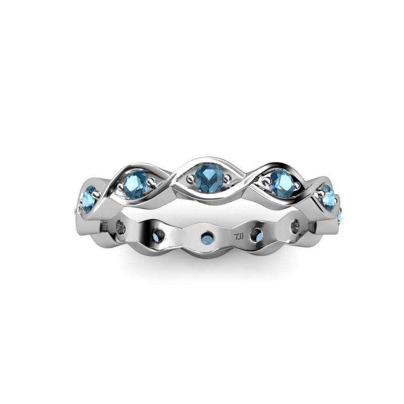 This fascinating 0.45 Carat tw-0.50 Carat tw Twisted Eternity Band will capture your attention with exciting Blue Topaz which are Prong Set in an Eternity style going all the way around your finger. *As per ring size the stone and carat total weight changes.