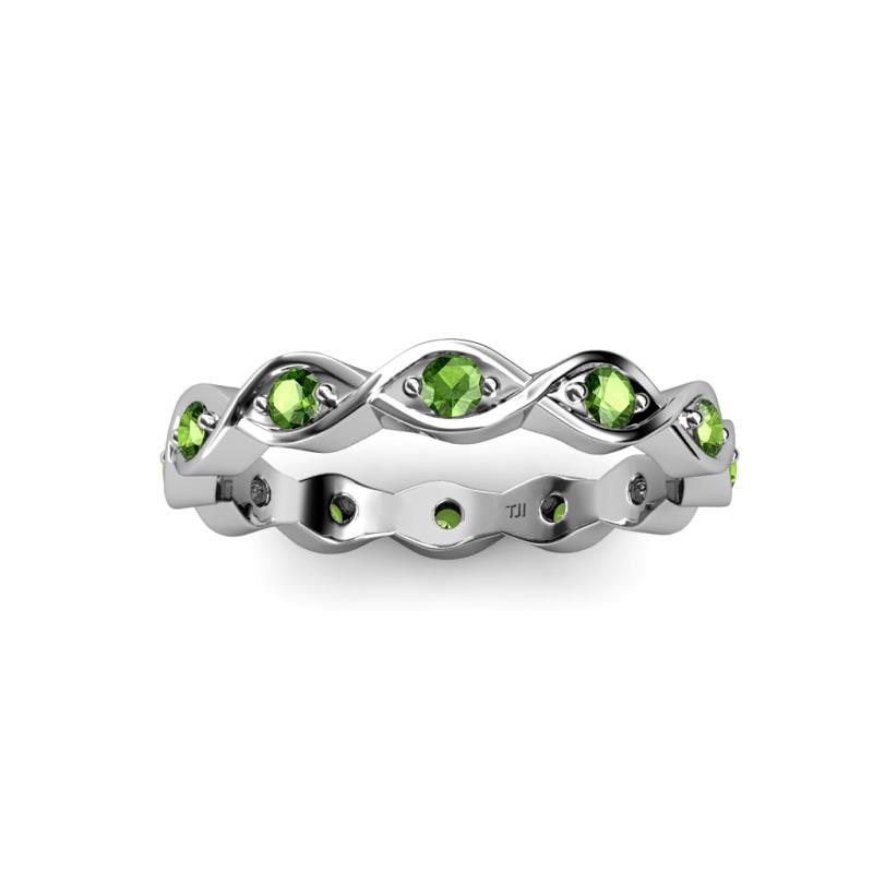 This fascinating 0.23 Carat tw-0.25 Carat tw Twisted Eternity Band will capture your attention with exciting Green Garnet which are Prong Set in an Eternity style going all the way around your finger. *As per ring size the stone and carat total weight changes.