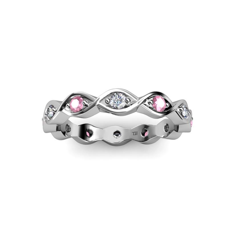 This fascinating Twisted Eternity Band will capture your attention with exciting Pink Tourmaline and Lab Grown Diamond which are Prong Set in an Eternity style going all the way around your finger. *As per ring size the stone and carat total weight changes.