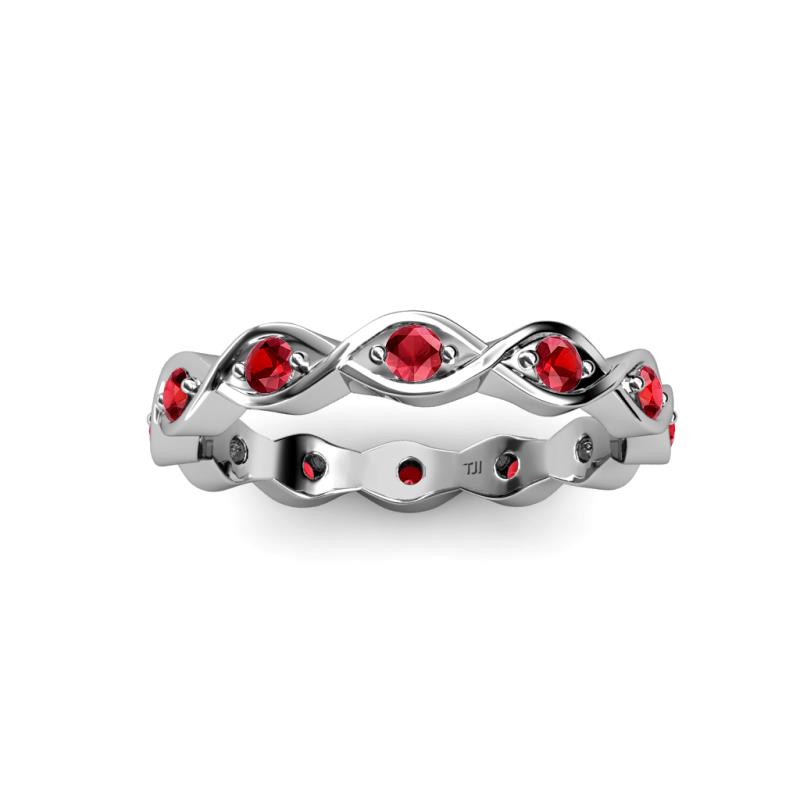 This fascinating 0.47 Carat tw-0.52 Carat tw Twisted Eternity Band will capture your attention with exciting Red Garnet which are Prong Set in an Eternity style going all the way around your finger. *As per ring size the stone and carat total weight changes.