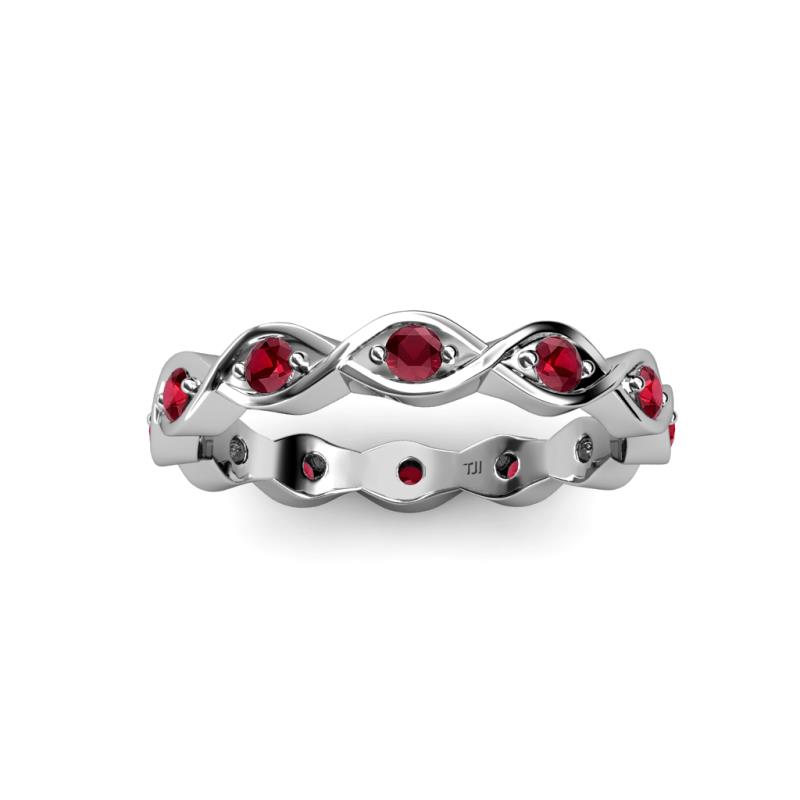 This fascinating 0.42 Carat tw-0.46 Carat tw Twisted Eternity Band will capture your attention with exciting Ruby which are Prong Set in an Eternity style going all the way around your finger. *As per ring size the stone and carat total weight changes.