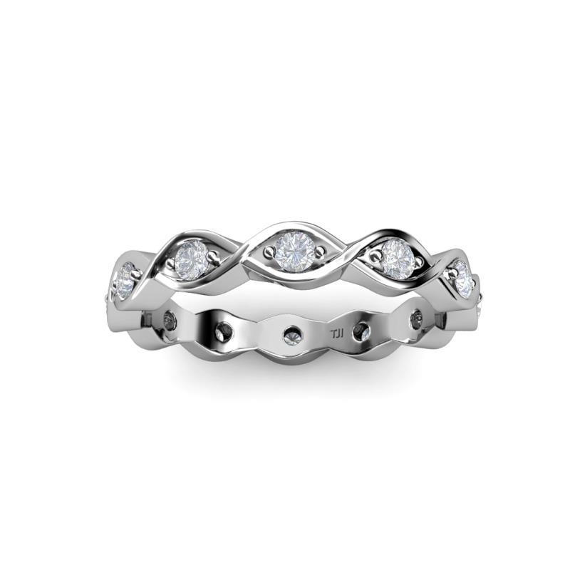 This fascinating 0.23 Carat tw-0.25 Carat tw Twisted Eternity Band will capture your attention with exciting White Sapphire which are Prong Set in an Eternity style going all the way around your finger. *As per ring size the stone and carat total weight changes.
