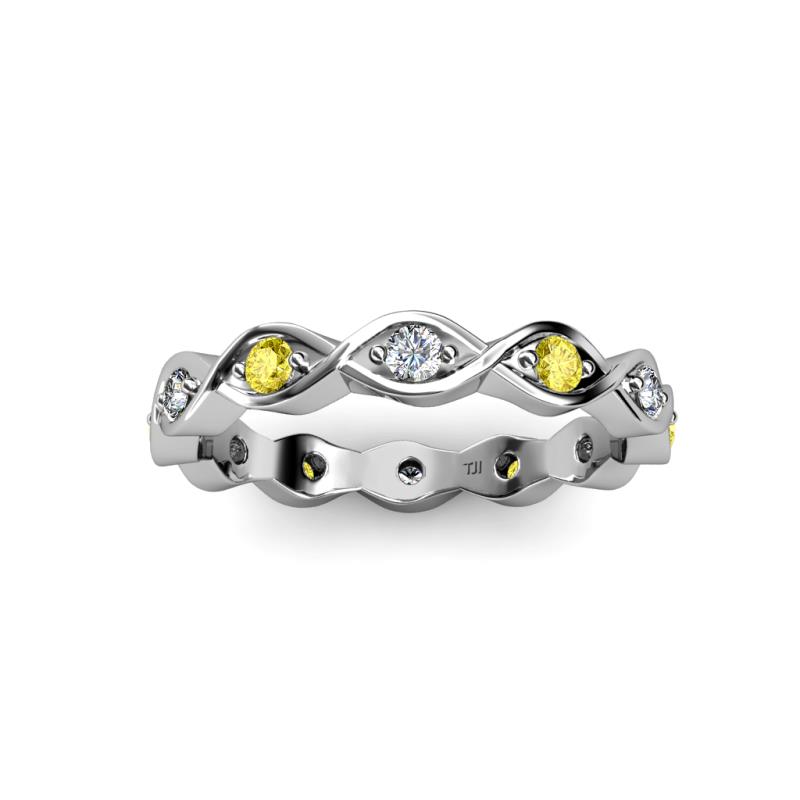 This fascinating 0.23 Carat tw-0.25 Carat tw Twisted Eternity Band will capture your attention with exciting Yellow Sapphire and Diamond which are Prong Set in an Eternity style going all the way around your finger. *As per ring size the stone and carat total weight changes.