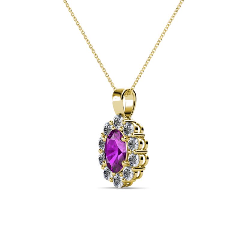 Oval Cut (6x4 mm) Amethyst and Diamond Womens Halo Pendant Necklace 0.75 ctw 14K Yellow Gold.Included 18 Inches 14K Yellow Gold Chain More Details ...