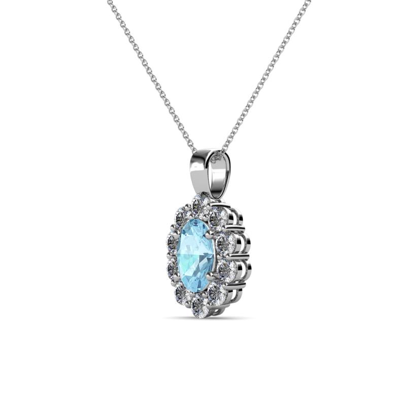 Oval Cut (6x4 mm) Aquamarine and Diamond Womens Halo Pendant Necklace 0.75 ctw 14K White Gold.Included 18 Inches 14K White Gold Chain More Details ...