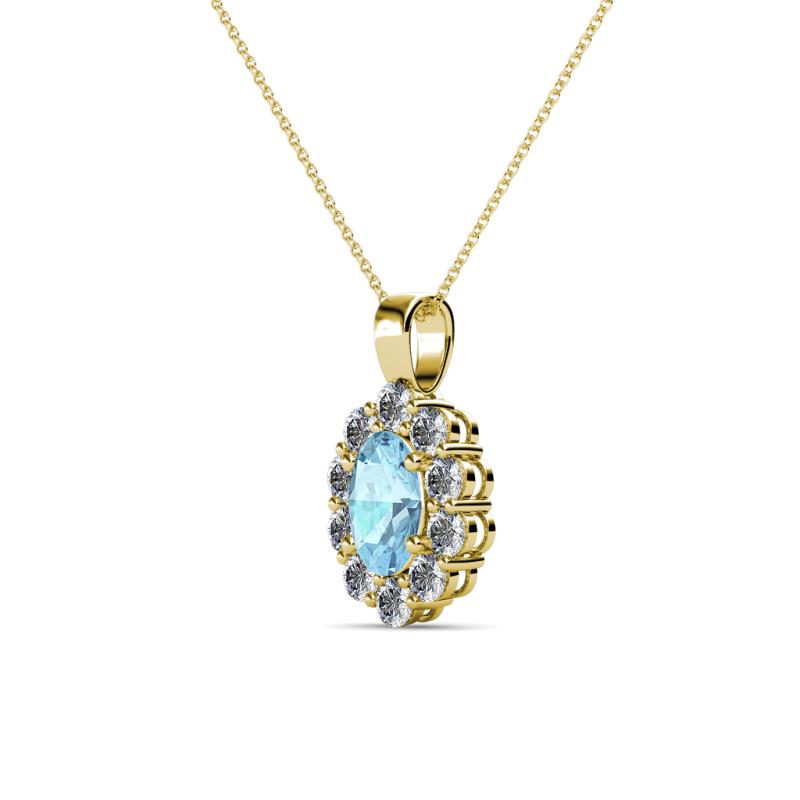 Oval Cut (6x4 mm) Aquamarine and Diamond Womens Halo Pendant Necklace 0.75 ctw 14K Yellow Gold.Included 18 Inches 14K Yellow Gold Chain More Details ...