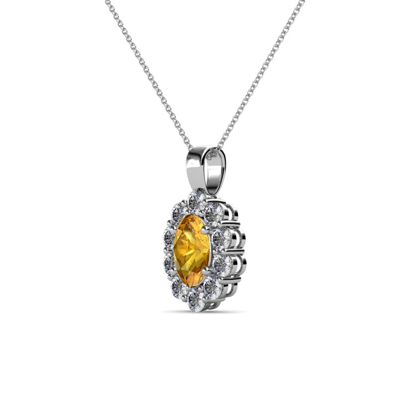 Oval Cut (6x4 mm) Citrine and Diamond Womens Halo Pendant Necklace 0.75 ctw 14K White Gold.Included 18 Inches 14K White Gold Chain More Details ...
