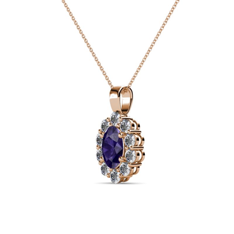 Oval Cut (6x4 mm) Iolite and Diamond Womens Halo Pendant Necklace 0.75 ctw 14K Rose Gold.Included 18 Inches 14K Rose Gold Chain More Details ...