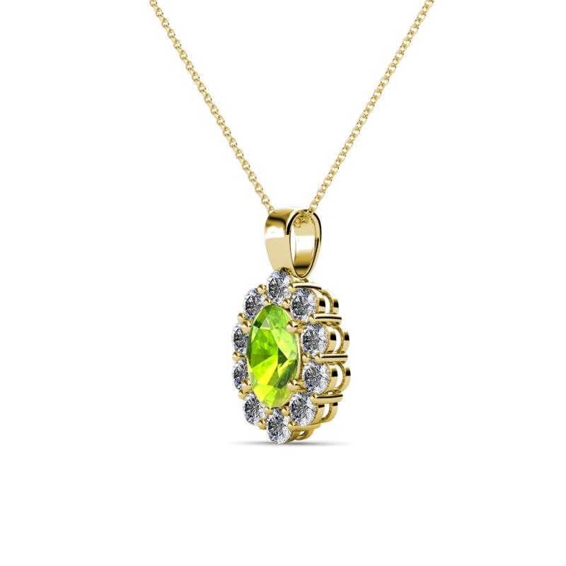 Oval Cut (6x4 mm) Peridot and Diamond Womens Halo Pendant Necklace 0.80 ctw 14K Yellow Gold.Included 18 Inches 14K Yellow Gold Chain More Details ...