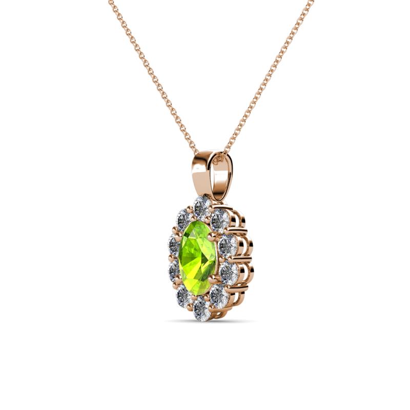 Oval Cut (6x4 mm) Peridot and Diamond Womens Halo Pendant Necklace 0.80 ctw 14K Rose Gold.Included 18 Inches 14K Rose Gold Chain More Details ...