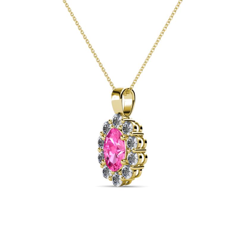 Oval Cut (6x4 mm) Pink Sapphire and Diamond Womens Halo Pendant Necklace 0.83 ctw 14K Yellow Gold.Included 18 Inches 14K Yellow Gold Chain More Details ...